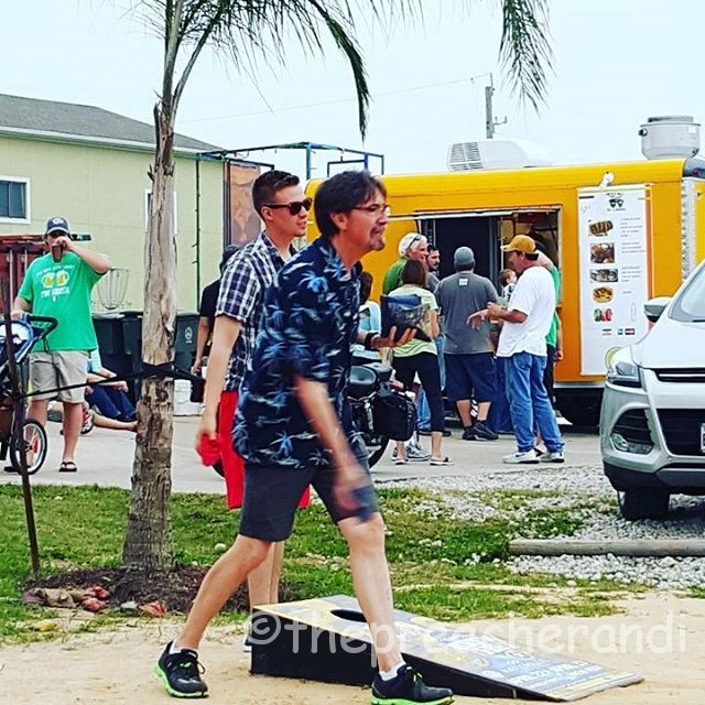 I told you we searched out where the best places were to eat! Below, the first picture is of the Preacher eating oysters at the Black Pearl Oyster Bar in old downtown on Galveston Island. The second picture is at Pook's in Santa Fe, Texas. The guys ate 5 pounds of craw-fish all by themselves. And the thrid picture is a little place that had cool swings to sit in, picnic tables, and a really good food truck. The guys enjoyed playing corn-hole.